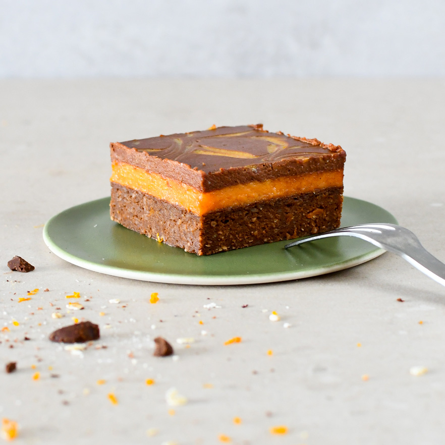 Mr. Choco Hokkaido // Een nieuw seizoen is in aantocht en dat is altijd een goed excuus voor nieuwe taartjes. Dit taartje klinkt als een superhelden taartje uit Japan. Rijk aan kruiden om je lekker comfy te voelen thuis of in je favoriete café met een kopje thee of koffie. We gebruiken mooie biologische Hokkaido pompoenen uit het seizoen, combineren die met sinaasappel en zachte chocolade. De gebakken pompoenbodem heeft een zachte structuur met warme kruiden zoals kaneel, gember & kardamom die heerlijk samen gaan met de zesty zoete sinaasappel laag. Lager in suikers, zonder kokosolie en vol vezels is mr. Choco Hokkaido je nieuwe beste vriend in deze herfst en misschien wel in de winter.