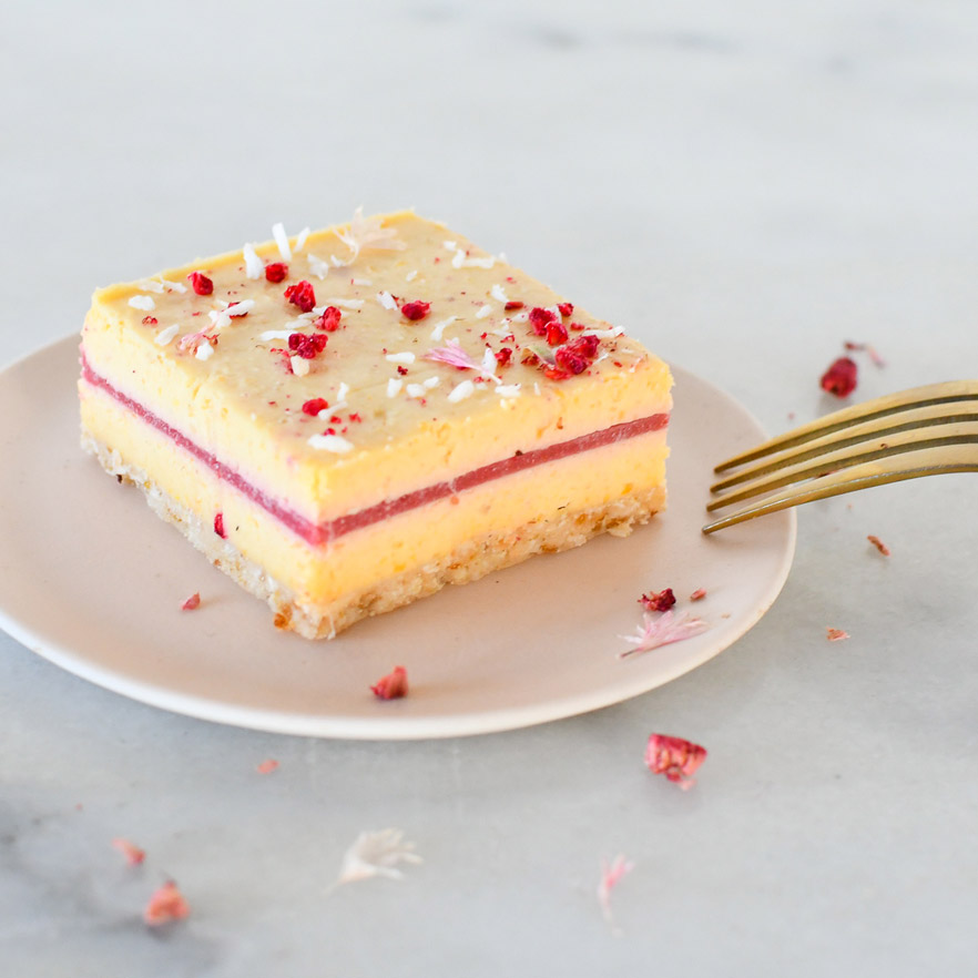 De naam komt van de Chinese mythe, read thread of faith, het rode draadje die voorbestemde geliefdes aan elkaar verbind. In dit taartje verbind het heerlijk romige ananas, abrikozen laagjes met een frambozen oranje bloesem laagje met elkaar. Liefde voor mooie ingrediënten en smaken.