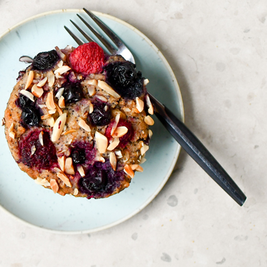 Muffins, zoet of juist hartig. Deze serveerde we in ons Bakerycafe Everyday maar ook te koop voor thuis. Deze zoete muffin is heerlijk zoet en fruitig door de blauwe bessen, frambozen en zwarte bessen. Voor nog meer smaak voegen we frisse citroenrasp en verse gember toe. Met wat crunchy amandelen om extra bite te geven. De muffin is op basis van amandelen en boekweit en zijn erg vullend