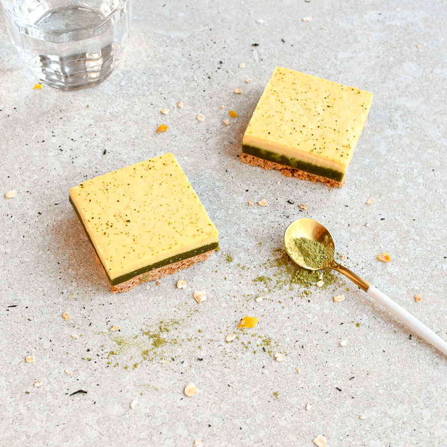 In 2015 maakte we een taartje de matcha no-cheesecake waarin we aardse matcha combineerde met fris bloemige yuzu. Het taartje bestaat niet meer, maar de smaak combinatie vind je terug in dit taartje. Geniet van koekjeskruimel bodem, vanille/matcha dadelcaramel met een toplaag van yuzu-citroen curd. Are you yuzu to my matcha? Nootvrij*, maar voor de liefhebber van complexe smaakjes.